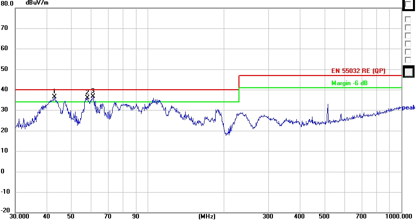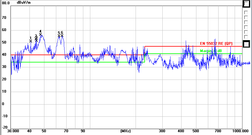 五:整改結果:輻射值下降15dB,通過EMC認證。