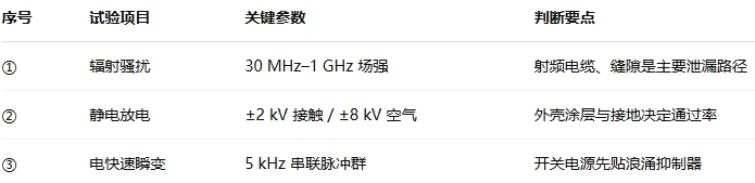 提示:在消聲暗室與傳導室雙場景完成閉環可覆蓋 80% 失效模式。